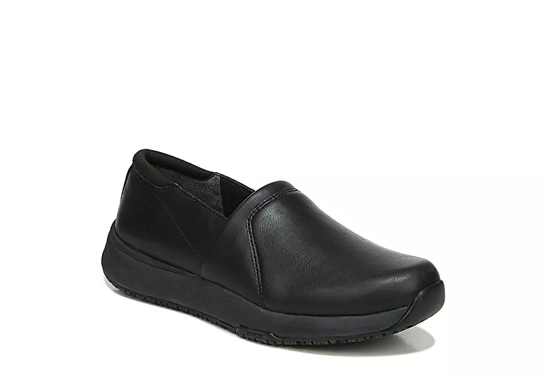 Skip right to the task at hand in the Dr. Scholl’s Dive In Slip Resistant men’s work shoe. With a faux leather upper featuring an eco-conscious fabric toe box for sustainable comfort, this slip-on sneaker is lightweight and flexible enough to work with you. The Memory Foam Cool Fit insole & midsole reduce foot pressure as they cushion while the Lock Step outsole resists oil and never leaves a mark.