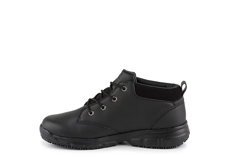 Flip your workday on its head in the Memory Mike Mid SR men’s work shoe from FILA. With a leather & faux leather upper featuring a rear pull tab for easy entry, this lace-up hybrid combines a sneaker’s comfort with the style of a work boot. The Memory Foam footbed cushions every step while the outsole offers ASTM-standard oil and slip resistance protection.