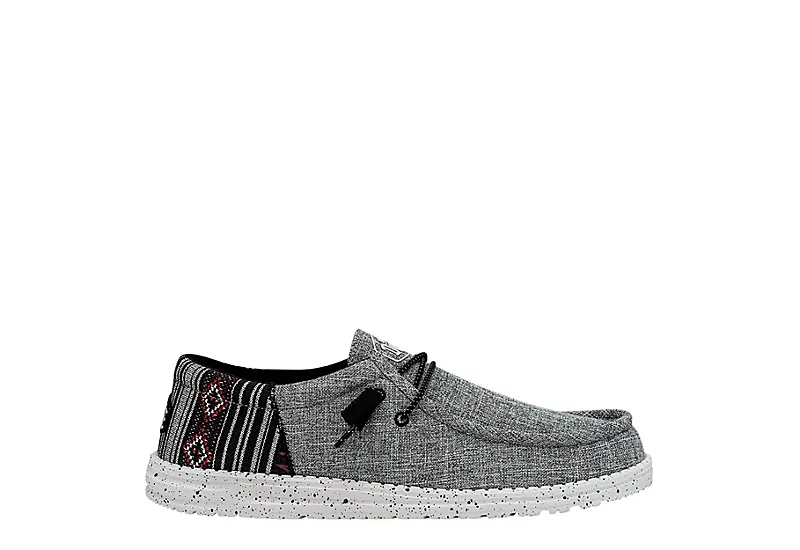 Relax into your passion with the HEYDUDE Wally Funk men’s slip-on sneaker. With a chambray-blend upper featuring a cushioned ankle collar, contrasting heel detail, and Flex & Fold technology, this sneaker also has elastic laces for a secure fit. The leather-lined removable insole comforts every step, while the ultralight outsole sets you free to explore unfettered.
