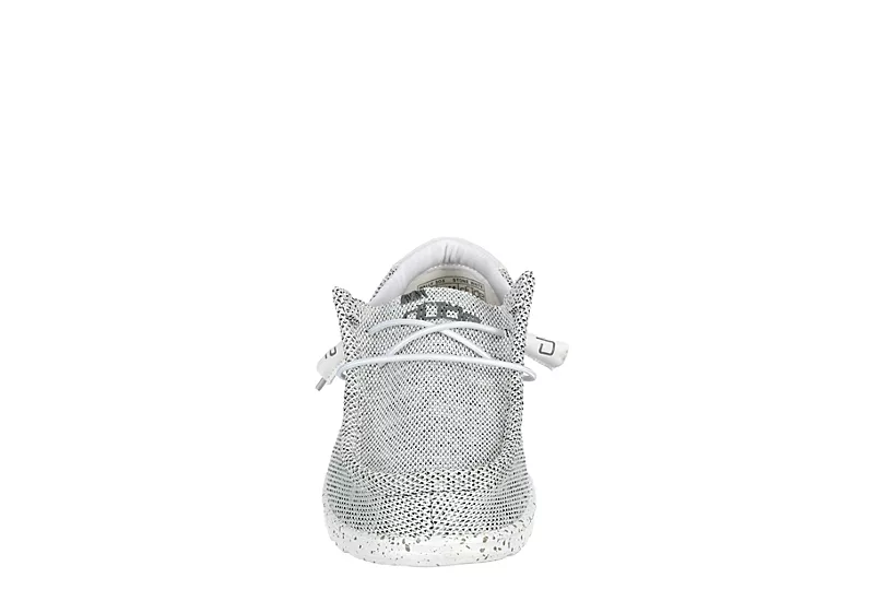 Relax into your passion with the HEYDUDE Wally Stretch Blend men’s slip-on sneaker. With a stretch cotton upper featuring a wide, flexible fit and breathability, this sneaker is machine washable for easy maintenance. The removable Memory Foam insole and leather lining offer ergonomic comfort and cushioning while the ultralight EVA outsole sets you free to explore unfettered.