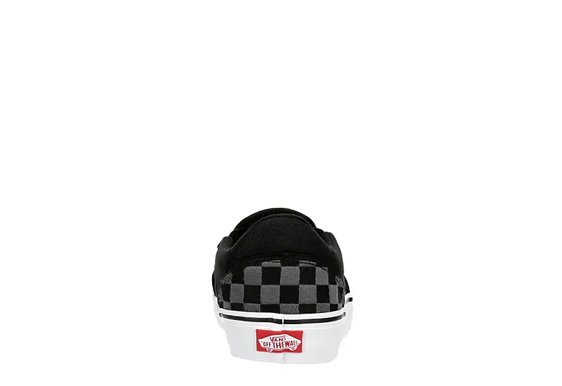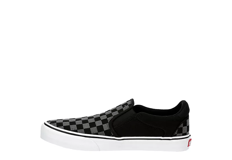 From its streamlined, slip-on design to the subtle checkered print, the Vans Asher Checkerboard menโs skate shoe is laid-back and authentically cool. The canvas upper wonโt weigh you down when youโre trying new tricks on the board.